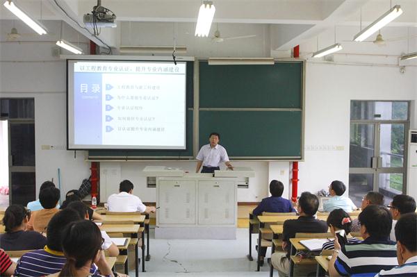 6月28日下午,浙江科技学院罗朝盛教授应邀来必赢官网作了“以工程教育专业认证,提升专业内涵建设”的专题报告。校党委书记胡建新,副校长李长吉、吾国强出席报告会。工科学院全体教职工,马克思主义学院全体教师,承担高等数学、大学物理和大学英语等教学任务教师,以及相关职能部门人员到场聆听报告。