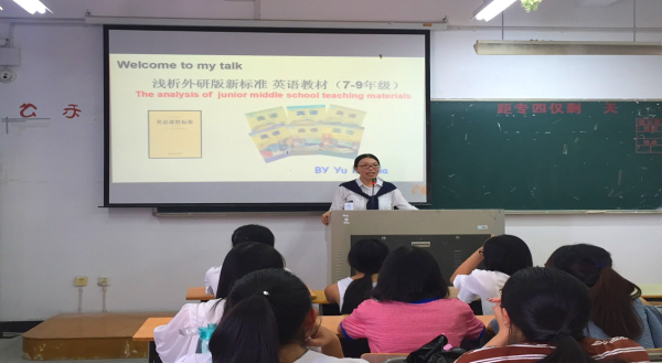 9月26 日,龙游华岗中学教坛新秀、校友余美霞应邀作题为《浅析外研版新标准英语教材(7-9年级)》的学术报告。2015级英语(师范)专业学生及教师代表参加了此次报告。