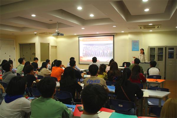 陈玮以幽默的语言生动地将同学们“带进”两会现场,以一张张珍贵的照片、报道和真实场景让同学们直击现场的热烈气氛,感受大会的严明纪律和开放创新,聆听新时代的最强音。而后,陈玮用“旗帜鲜明,主题突出”“成果丰硕,影响深远”“气氛热烈,务实开放”“纪律严明,会风清正”32个字提炼两会特点,并结合游学经历,讲述了中国的历史成就和巨大变化,点燃了同学们的自豪感与爱国热情,现场多次响起久久不息的热烈掌声。