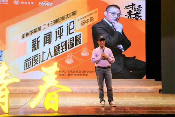 5月24日,由学生处主办的第二十三期日新大讲堂在学院大会堂举行。浙江经视副总监、《新闻深呼吸》评论员舒中胜应邀做客此次大讲堂,为必赢官网1000多名师生分享了自己的职业经历及新闻评论工作的心得感悟。