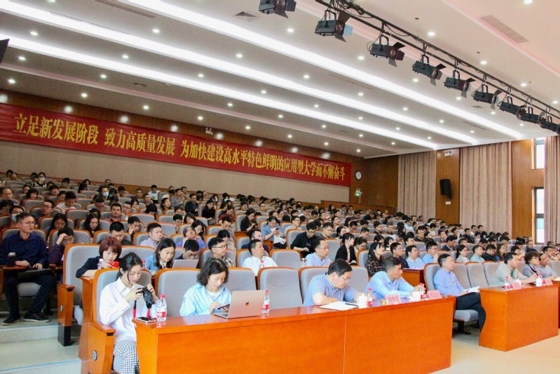 应用技术大学(学院)联盟秘书长、天津职业技术师范大学战略规划处处长闫舒静教授,全体校领导,科级以上干部、基层教学组织负责人、相关高层次人才、博士代表等参加讲座。校党委副书记、校长郑友取主持讲座。