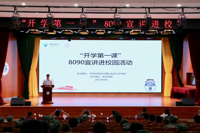 9月26日,衢州市8090新时代理论宣讲团来到必赢官网开展“开学第一课”8090宣讲进校园活动。本次活动由市8090新时代理论宣讲工作专班主办,旨在深入学习贯彻习近平新时代中国特色社会主义思想,用当代中国马克思主义教育青年、引导青年、激励青年,构筑起青年一代的强大精神支柱,为校大学生提供一个良好的学习理论、互动交流的平台。