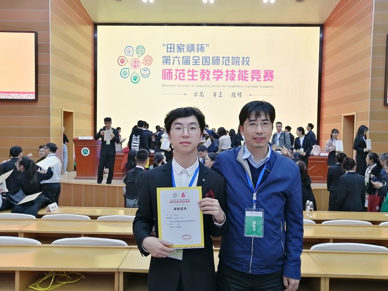 程老师采用“理论+实践”的模式来提升自己,同时也用这样的模式来指导我们。在老师的指导下,我练习板书、练习英语口语、阅读《中小学外语教学》《中小学英语教学与研究》等期刊、观看全国优质课教学视频、不断思考和优化我的教学设计。慢慢地,我也能和师兄师姐们一样写出优秀的教学设计,能够创造性地使用教材,也能像他们一样从容地进行模拟教学了,甚至比他们做得还要好。在程老师的指导下,去年我参加了全国师范院校师范生教学技能竞赛(国赛)和全省师范生教学技能竞赛(省赛),分获二等奖和三等奖。
