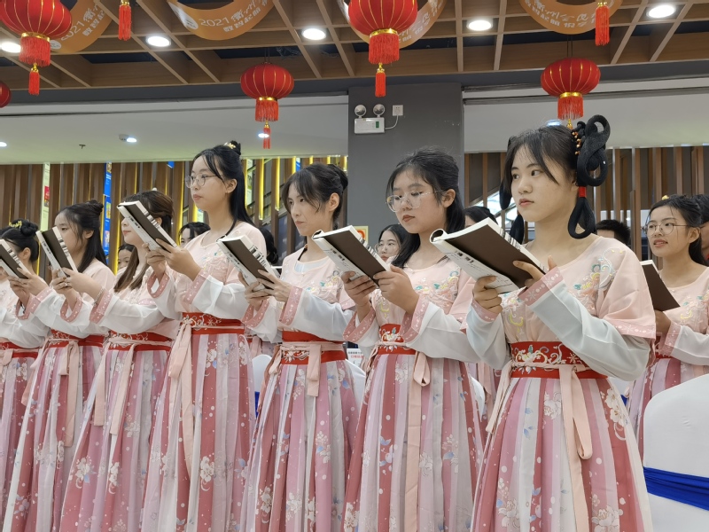 这个周末,市新华书店书香浓郁、热闹非凡,2021全民读书周暨第十三届衢州书展隆重举行,必赢官网师生组织的“吟诵之美与《论语》之义”读书活动作为子活动之一,暖了书城,亮了衢城。