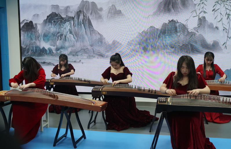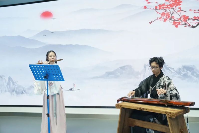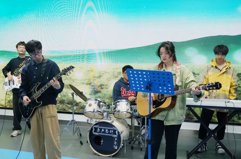 在“美美与共·云上音乐厅”,电声乐队、琴笛合奏、琵琶独奏、吉他弹唱等节目精彩纷呈,民族乐与西洋乐奇妙碰撞,一场美的探索之旅就此开启。一曲《NEW BOY》热情洋溢,鼓点与琴弦相和,绽放青春活力;琴笛合奏《梅花三弄》意蕴悠扬,将傲雪霜梅的不屈精神展现的淋漓尽致;古筝独奏《行者》别具一格,跌宕起伏的琴音拉开了一幅动人画卷,讲述着穿越丝路的探寻旅途;吉他弹唱《这世界那么多人》、吉他独奏《青花瓷》声声入心,勾起了大家心底的温暖;钢琴合奏《欢乐进行曲》默契十足,音符在指间跳跃,流淌出欢乐的乐章;嘈嘈切切错杂弹,大珠小珠落玉盘,一首琵琶独奏《草原英雄小姐妹》,弹尽草原女儿的肆意潇洒;当钢琴遇上小提琴,指间在琴键飞扬,一曲《可惜没如果》触碰着大家的心弦;清脆美妙,空灵回响的曼陀铃响起,青年学子用心用情演奏《感恩父母》,表达对父母之爱;古筝团的《战台风》高潮迭起,气势磅礴,刻画了码头工人对抗台风的场面,传递了自强不息的精神力量。