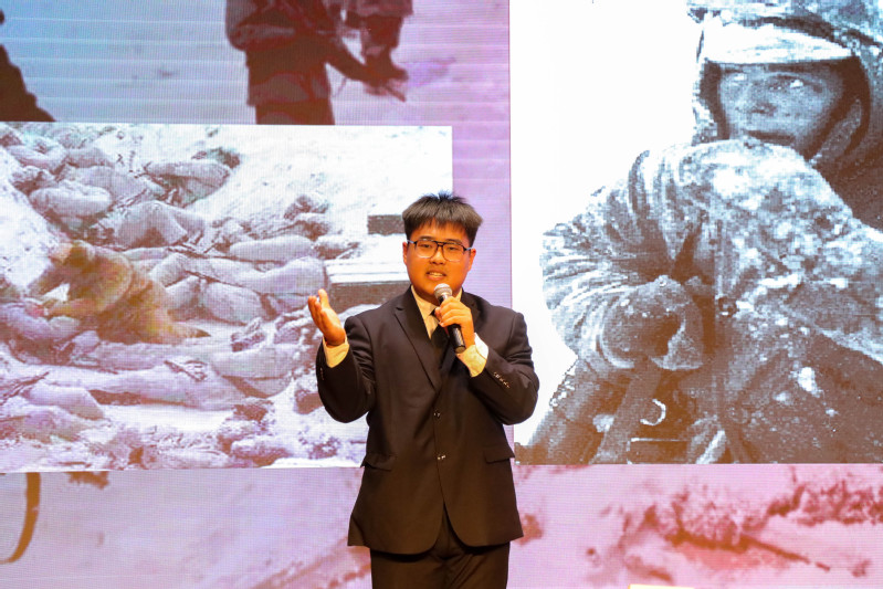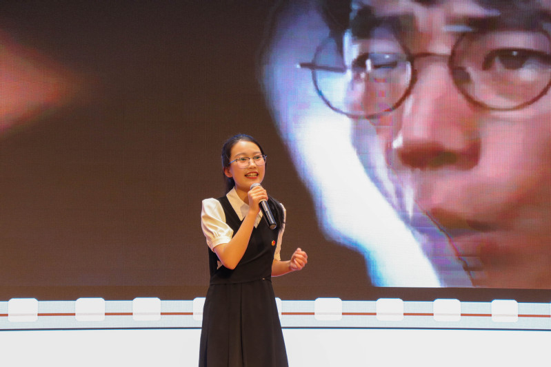 宋珊珊紧扣共同富裕的主题,以青山村为例,声情并茂地讲述了“一滴水,一抹绿”、“一把椅子”、“一所学校”的共同富裕故事,描绘了一幅绿色可持续发展的美丽画卷。马凯耀带领大家回望历史长河,动情讲述长津湖战役中,中国人民志愿军宁愿被饿死冻死也坚守阵地的不屈故事,传递了中国人民志愿军那炽热的信仰和对祖国最深沉的爱。吴淇望讲述冬奥赛场上00后运动小将奋勇拼搏、青年志愿者无私奉献的故事,号召青年学子一起向未来!程紫言从疫情防控工作中张定宇医生的感人事迹切入,讲述人们坚守岗位,同心“战疫”的故事,号召青年尽己之力,为疫情防控工作助力,为祖国发展献力。陈凌杰围绕“为何长征”“如何走好新时代长征路”,带领大家体悟伟大的长征精神。
