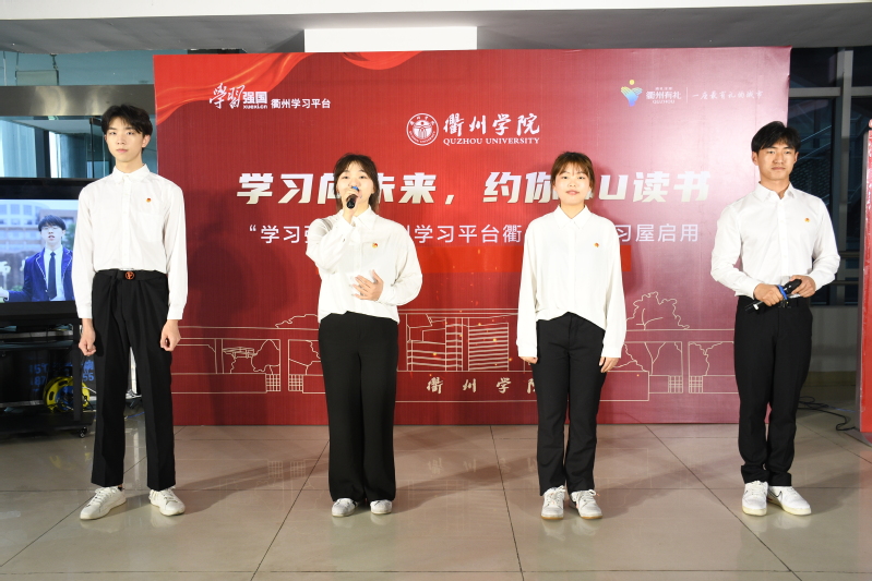 “强国一代有我在,我要秀出我厉害,幸福人生奋斗来……”在衢院学子澎湃的歌声中,活动正式拉开序幕。随后“学习强国”衢州学习平台8090新时代理论宣讲团成员张馨欧、胡婷翌带来宣讲介绍了“学习强国”APP与衢州学习平台。
