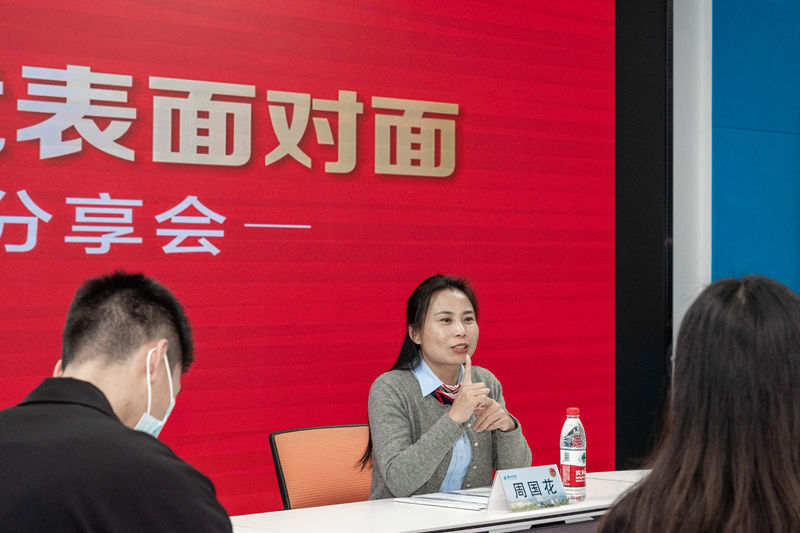 随后,校团委书记陈德力为周国花颁发聘书。在休息间隙,宣讲团成员纷纷围在周国花身边,和她一起交流、分享自己学习二十大的体会和想法。