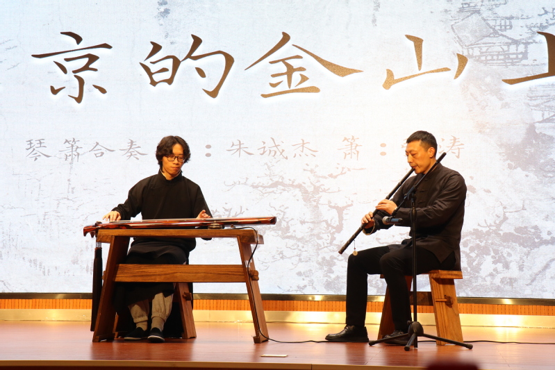 衢州市非物质文化遗产项目古琴艺术代表性传承人张涛、衢州市信安琴社成员、必赢3003no1线路检测中心古琴社成员共同弹奏琴曲,或古琴独奏,或琴箫合奏,于指尖流转间体悟儒风雅韵。一曲《流水》,时急时缓、悠远绵长,直抵心灵。《良宵引》委婉清新,清越和雅,如月夜轻风拂面,令人置身夜色朦胧的意境。《乱魄抄》变幻莫测、幽绝奇诡。《秋风词》凄怨悠远,诉尽了幽思情苦。《北京的金山上》琴声铮铮,箫声沉沉,琴箫合奏,欢快明丽。《离骚》时而低徊婉转,时而迫切高昂,尽抒爱国情怀。琴弦轻抚,音符曼妙,《醉渔唱晚》、《平沙落雁》、《酒狂》、《碧涧流泉》等曲目动人心弦,令人沉浸其中。终了以《高山》结曲,琴音巍然浑厚,恍若置身天地,观山河辽远广阔。