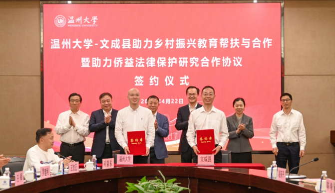 聚焦侨智凝聚,深挖侨乡共富资源。文成县是著名侨乡,温州大学是国务院侨办首批华文教育基地、中国华侨华人研究(温州大学)基地、中国华侨国际文化交流基地,侨教育特色显著,双方合作充分挖掘涉侨优势资源,打好“侨”牌。学校华侨学院组建专家团队,聚焦侨益法律保护、侨乡资源开发等领域,推动落实多个涉侨项目。如创新开展“送党课到侨乡”活动,与文成县人民检察院共建以侨益法律保护为主要内容的教学科研平台,举办暑期学术夏令营,组织召开两届“侨乡发展与共同富裕”学术研讨会。针对文成侨领辈出的特点,学校侨务研究专家对当地华侨华人进行深入访谈,积极宣传华侨精神;在田野调研的基础上撰写了《余序整文集》《侨韵慢城》《玉壶华侨人物风采录》等侨乡专著;深入调研了解侨乡现状,形成两篇资政报告,为吸引侨领侨胞反哺侨乡建设提供了借鉴。