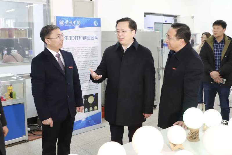 下午,高屹实地走访了衢州职业技术学院四省边际大健康公共实训中心、数字创意设计实训中心、金融财经实训中心,调研了大学生创业园、特色体育项目训练基地,现场观摩特色课程教学,察看师生实训操作,详细询问毕业生留衢就业等情况,点赞课程实用性、应用性强。在华友新材料学院、智能制造实训中心,高屹深入了解产教融合情况,充分肯定学校按照“紧贴实际、紧贴实体、紧贴场景”的要求,找准校企合作结合点,构建产教融合生态圈,取得了明显成效。
