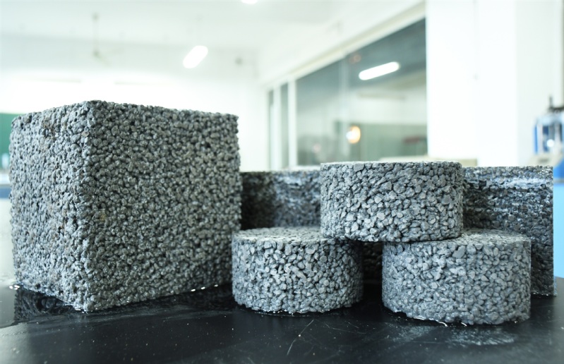 研究中心从2016年开始承担衢州海绵城市研究课题,但是在透水路面的强度和透水性上一直没有理想的方案。普通透水混凝土的强度一般在15MPa以下,很难达到车辆停放、行驶所需要的强度。但是强度高的透水性差,透水性好的强度低是透水混凝土面临的普遍问题,制约着透水路面的发展。