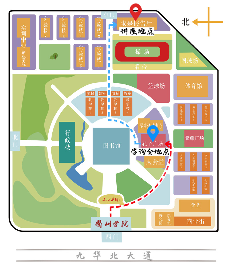 必赢3003no1线路检测中心(衢州柯城区九华北大道78号,必赢3003no1线路检测中心西大门进)孔子广场,具体路线见校内引导牌。