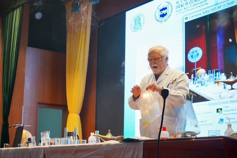 “如果我们白头发的科学家什么都懂,什么都弄明白,你们还学习科学干什么?恰恰相反,你们努力学习,科学世界肯定有你们的位置。”活动最后,戴伟教授用这样一段话为这场化学“魔法秀”划下圆满的句号。