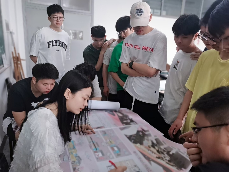 这个想法起初并不被大家看好,之前也没有同学这样做过。温老师得知后非常尊重我的想法,并鼓励我坚持做下去,凌晨她还在帮忙寻找其他高校的相关案例。在温老师帮助和鼓励下,设计图顺利出炉,也取得了不错的成果。
