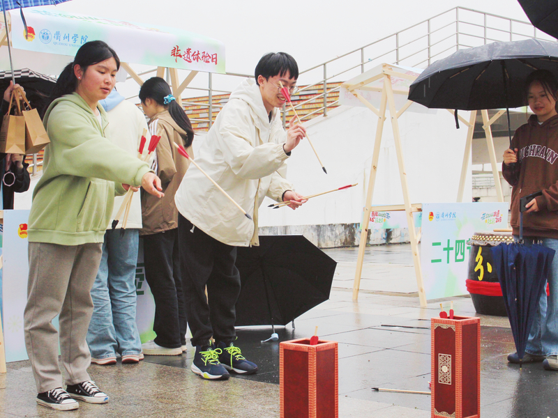 商学院22人力3班的达瓦曲珍同学对投壶格外感兴趣,作为一名00后的藏族青年,这是她首次尝试投壶,“从前我只在电视上看到过投壶,没想到今天有机会可以亲身体验!”