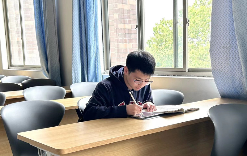 车鹏超一坐下来便开始全身心投入学习,先背1个半小时的英语单词,然后便开始刷数学题。为了保证下午有充沛的精力,车鹏超会选择中午小憩30分钟。由于初期只需要准备英语和数学,所以车鹏超将大部分时间花在了数学难题上,他一边看教学视频,一边刷数学题,正如作家书写想象中的世界时会文思泉涌,画家描绘美丽图景时会痴迷陶醉,车鹏超在攻克数学难题时也经常陷入沉醉的状态,会不知不觉从上午刷到晚上。