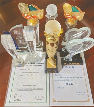“那个时候整个衢州打网球的人没几个,我回来之后也找不到人跟我打,就自己对着墙打了一年多。”陈功说,找不到专业的教练,他就通过看电视、杂志、专业书籍去摸索提高。