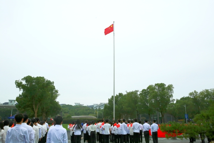 鲜艳的五星红旗迎风飘扬,全体同学面向国旗,举起右拳,庄严宣誓。“以青春之我,创造青春之衢院;以奋斗之我,谱写强盛之中国!”青年学子神情坚定,誓言嘹亮,令人动容。而后,《灯火里的中国》全场唱响,全体师生挥舞国旗,深情祝福祖国。