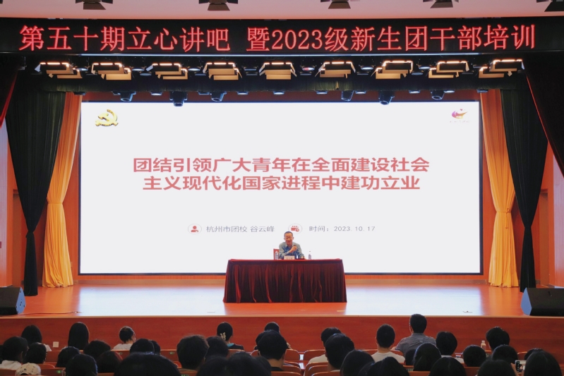 为强化对2023级新生团干部的政治引领,提升新生团干部的精神素养和工作能力,夯实基层团组织建设,10月17日晚,校团委邀请了杭州市团校谷云峰老师做客立心讲吧,为200余名新生团干部带来了一场别开生面的团课。