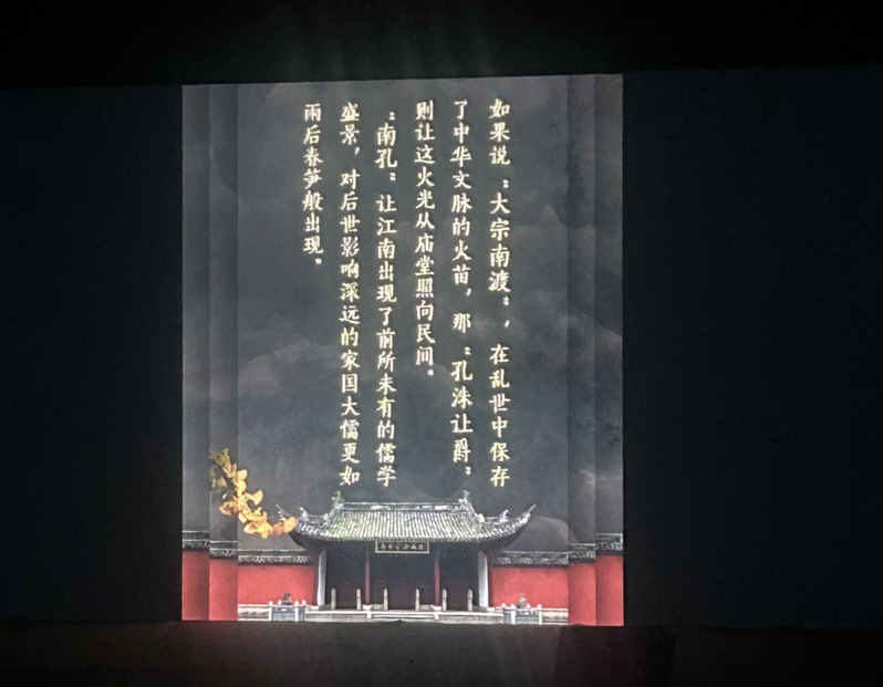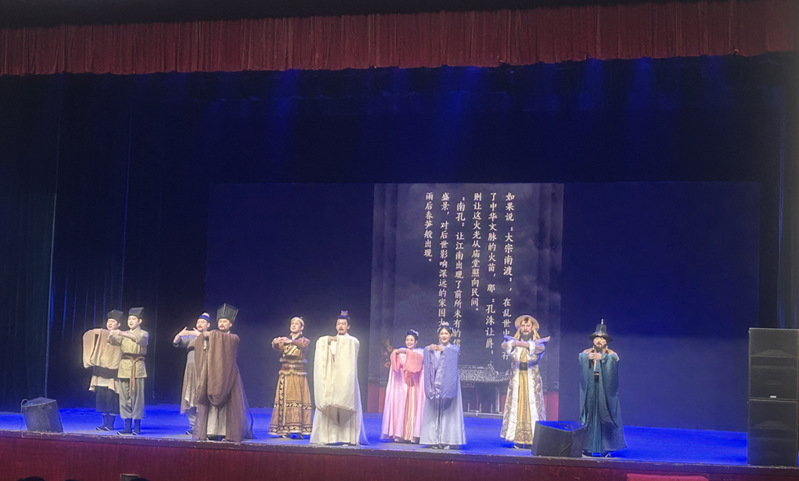 一个多小时的演出里,现场掌声不断。师生们随着演员们的一颦一笑,一喜一怒,穿越700多年岁月,沉浸式体验孔氏南迁后的命运跌宕和南孔文脉传承。