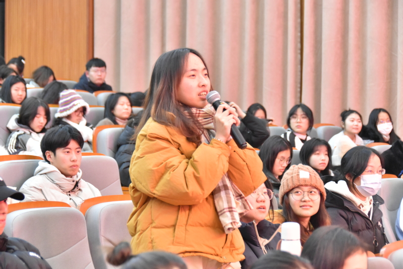 真实生动的案例,声情并茂的讲述,使同学们深受触动,现场掌声不断。23 商务英语专的汪瑞希说:“青春需要奋斗,青年拒绝躺平,姚老师的分享让我更深刻地懂得了坚持的意义和积累的价值,未来我也将积极进取、努力拼搏,让青春绚丽绽放。”