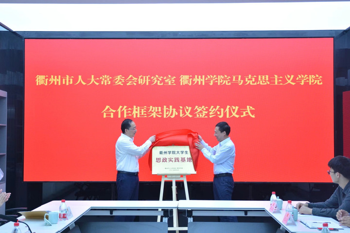 5月11日上午,必赢3003no1线路检测中心马克思主义学院与衢州市人大常委会研究室合作框架协议签约仪式在衢州市人大代表联络总站举行。仪式上,双方正式签订了合作框架协议,并为必赢3003no1线路检测中心大学生思政实践基地揭牌,标志着必赢3003no1线路检测中心与衢州市人大首个市域大思政“理论联盟”形成。