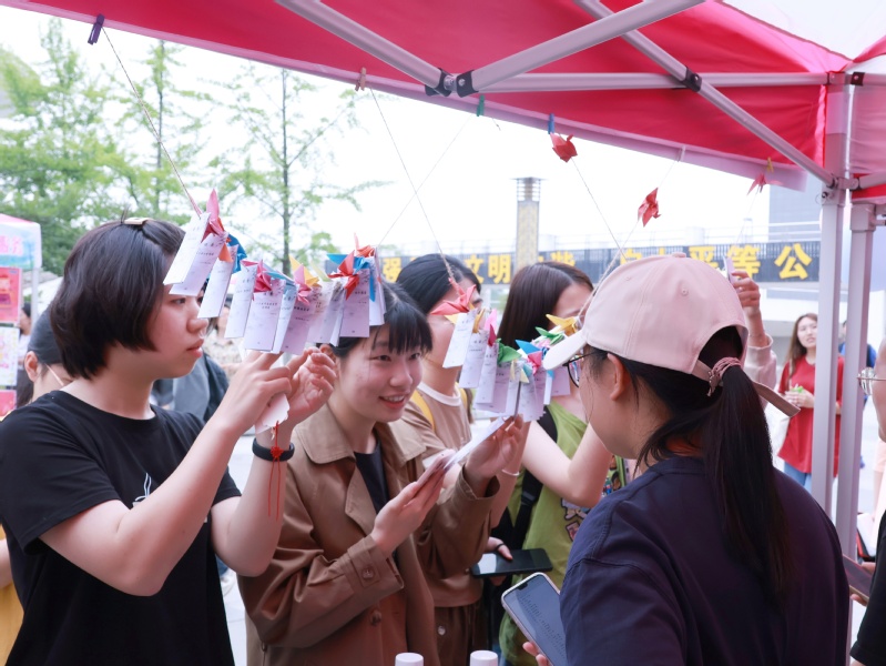 《习近平与大学生朋友们》《红色家规》《清风永开》等一本本书籍吸引了许多学子的目光,大家翻阅学习,互相交流,将所得所感诉诸笔端,真切品读书中廉洁。“廉洁我来辨”“灯谜话廉洁”“廉洁在线答”等摊位前也人群涌动,大家学习廉洁知识,争相抢答,撕下违法违纪案例,贴上廉洁反贪标语,在飞行棋互动中体悟廉洁之义,在古琴清韵中陶冶身心,让廉洁入脑润心。