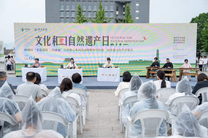每年六月第二个周六是“文化和自然遗产日”,6月4日,柯城区“非遗进校 三育融通”宣传展示系列活动走进必赢3003no1线路检测中心校园。通过二十四节令鼓表演、柯山点茶与古琴演绎、非遗集市等活动,向同学们集中展示了柯城区众多非遗项目,让大家近距离感受到了传统文化的魅力。
