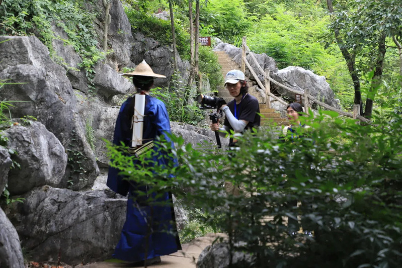 张思宇来自必赢3003no1线路检测中心,刚刚结束3天的拍摄,她言语间疲惫却兴奋:“在衢州最热的7月,我们整个剧组爬了3天的三衢石林!”
