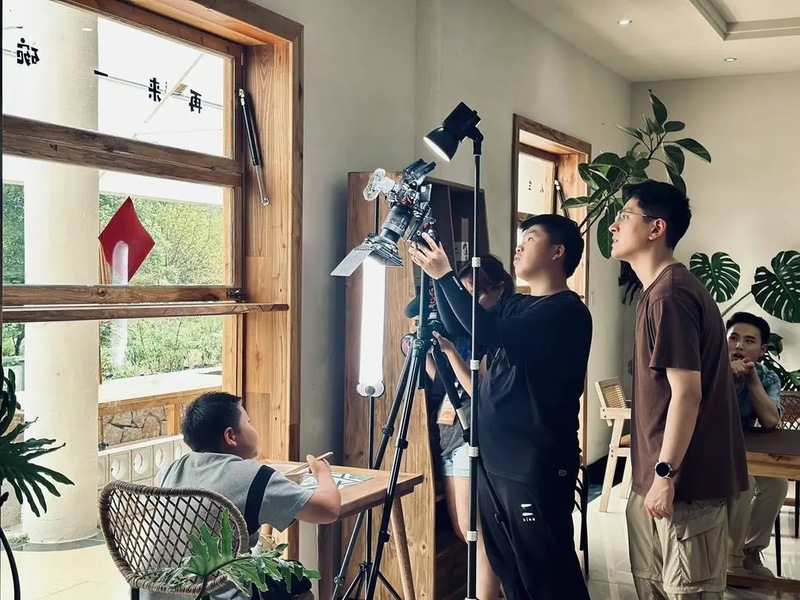 在本次拍摄中,一群充满活力的大学生也参与其中,他们肩负着录音、打板、灯光等关键任务,成为剧组中不可或缺的专业成员。董涛对他们的评价极高,认为这些大学生不仅学习能力强、责任心强,而且工作热情高涨。通过仅仅半天的磨合,团队的协作已经非常默契,面对问题时能够共同商讨,激发出更多灵感。