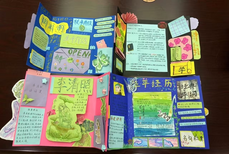 在海盐县百步中学的暑托生活中,同学们的读书热情丝毫不受酷暑的影响,除了自主阅读、精读鉴赏,语文老师们还另辟蹊径,开展创意读书活动,制作《人物主题书》、手作诗画书法编、绘制《人物思维导图》《自然笔记》……给同学们带来别样的阅读体验。