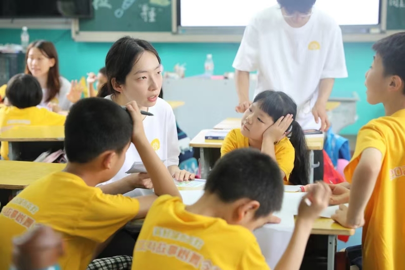 在温州市洞头区南塘小学,来自温州医科大学生命科学学院的大学生化身为“小老师”,带领小萌娃们共同制作系列海洋文艺作品、亲身参与海洋生态保护实践活动,引导小萌娃们变身为海洋生态的“小卫士”。