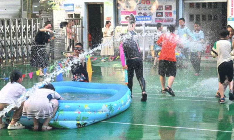 宁波前湾新区滨海小学为参加暑托的孩子们准备了一个“夏日惊喜”——“水上嘉年华”,孩子们尽情玩水,漫天的泡泡、喷洒的水枪,在欢声笑语间拥有一个难忘的暑托记忆。
