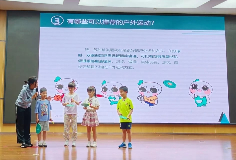 杭州市东城第二实验学校暑托班开设家长课堂。开班首日,403班徐乐橙妈妈为同学们带来爱眼护眼的科普讲座,从“户外运动篇”“课外阅读篇”“电子产品篇”三个方面科普护眼知识,引导孩子们学会如何保护眼睛。