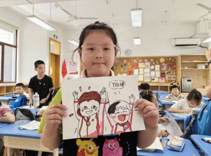 微微抱膝、双腿伸直,卡通画里的双人跳水运动员的入水动作像是复制粘贴;眉眼弯弯、牵手喝彩,在孩子们的笔下,运动员夺冠时的兴奋更加具象化了……杭州市临平区各暑托学校在老师的指导下,通过绘画记录奥运会中国健儿拼搏场景、上台领奖等精彩瞬间,与伙伴们共同分享这激动又难忘的时刻。