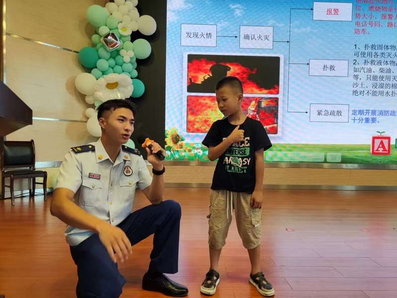 衢州市衢江区消防救援大队消防员来到衢州市衢江区实验小学的暑托班上,向师生们普及消防知识,让参训师生听得懂、看得清、学得会,并能应用到实践当中去。