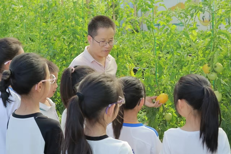 缙云县新建小学暑托班科学探索之旅热烈启程,学生们跟随科学老师来到学校劳动实践基地,走进神秘的太空番茄种植基地,近距离观察这些太空番茄。