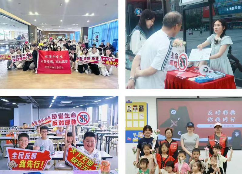 春蕾社反邪实践团深入社区乡村,以寓教于乐的方式,开展反邪教科普宣传。实践团前往公园、广场等地,热情分享邪教危害,让“反邪好声音”传到千家万户。实践团队开展近10场反邪教“课堂”,结合具体案例,提高少年儿童的反邪意识,护航青春无邪。实践团队开展“反邪夜市”、家庭合影、文艺体验、暖心志愿、反邪先进人物寻访等系列活动,让反邪教融于日常,形成共同抵御邪教的良好社会氛围。