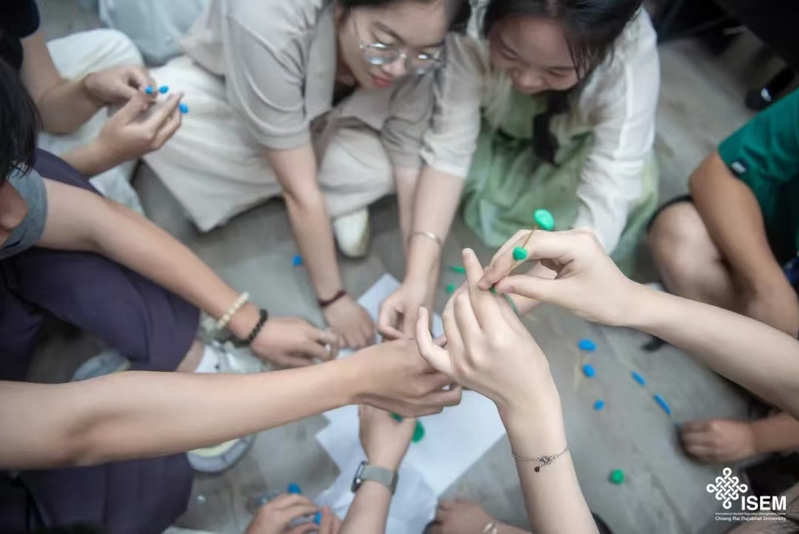 为激发与培养同学们的领导能力,清莱皇家大学苏塔副校长为同学们开展领导力实训。“最爱笑的人”“最帅的人”“最美丽的人”……同学们手持卡片,根据提示寻找朋友,获取签名,迅速“破冰”,拉近了彼此的距离。随后,同学们自由分组,进行七巧板拼图,巧用工具搭建“高楼”趣味游戏,大家分工合作,发挥巧思,体会团结的意义。“请画下房子、太阳、树……”在苏塔副校长的带领下,同学们开始图画绘制生活场景,绘制好以后,他对图画进行解读,引导同学们进行自我探索,现场乐趣满满。
