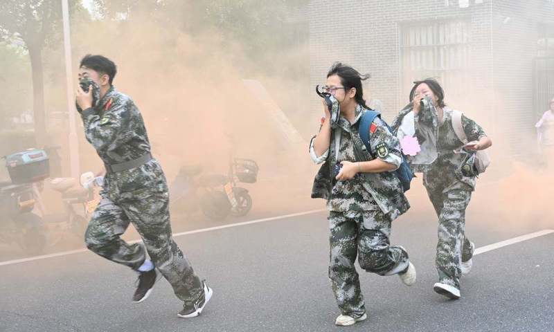 情景式拉练激发了学子斗志,燃起了浓浓爱国情。同学们在“国庆献礼”的打卡点驻足拍照,留下青春的誓言。