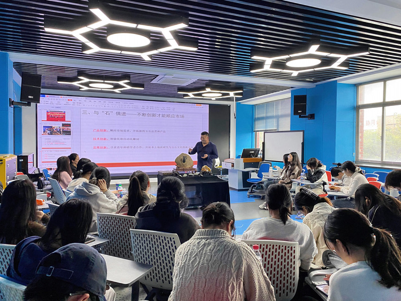 衢州石雕非遗传承人毛正浩带来一场精彩的石雕文化讲解。他围绕着石雕的技艺特点和创新发展与同学们展开探讨。毛正浩说:“不断创新才能顺应市场需求,希望更多的年轻人关注、参与非遗传承,充分发挥创造性思维和想象力,让非遗活起来。”