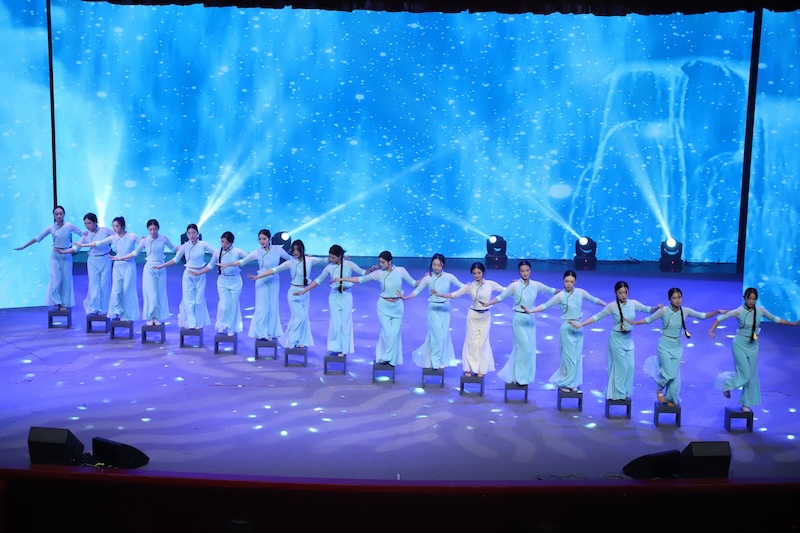 活动现场如梦似幻,传统文化与现代活力交织激荡,从不同角度展现了文化传承创新的魅力。教师舞蹈协会与学生社团共舞,《舞动衢院》《书简舞》《碇步桥》水袖翩跹,古韵悠然,宛如流动的画卷;街舞、操舞节奏轻快,动感十足,仿若奔涌的浪潮。大学生艺术团民乐团奏响《迎君至》,辅导员携手学生演奏双排键,唱响《小美满》,共同开启大学新篇章。中外学生代表身着汉服、旗袍与现代服饰走秀,带领师生感受古今文化融合的独特韵味。