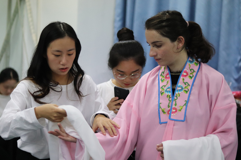 老师专业的展示、婺剧传统服饰的试穿体验,令国际学生感到十分欣喜。来自俄罗斯的Azaliia说:“婺剧服饰太美了,动作也很生动,非常迷人,有机会我们一定要去看婺剧演出。”