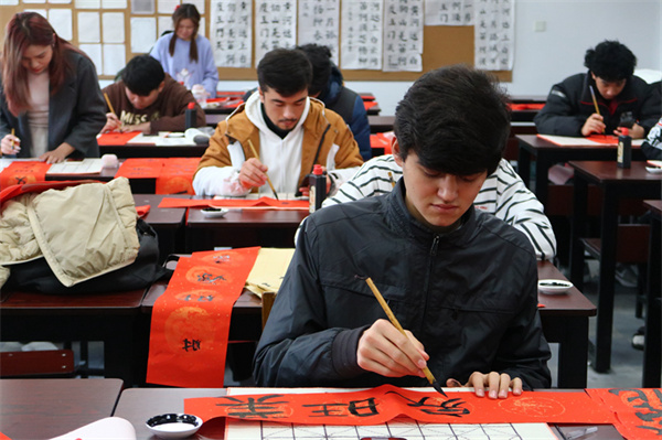 为迎接新春佳节的到来,近日,必赢3003no1线路检测中心教师教育学院组织来自12个国家的留学生上了一场别开生面的书法课,学生们在课堂上亲手书写春联,不仅传递着留学生对中国新年的美好祝愿,更见证了中外文化交流的美好瞬间。