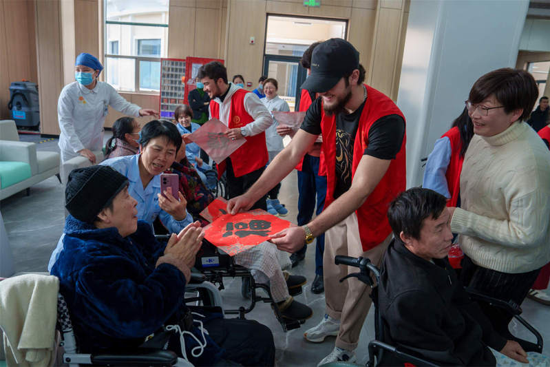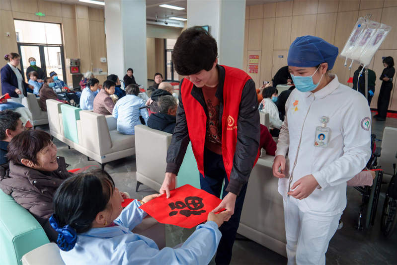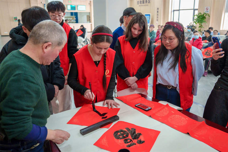 来自塔吉克斯坦的国际学生Sino告诉记者,“我把自己写的福字送给病患并和他们说:‘新年快乐!’。”“在菲律宾我也是一名注册护士,今天很开心参加这个活动,看到这里的医生、护士和病人关系很好,这是我没有想到的。”来自菲律宾的国际学生Daniele说。