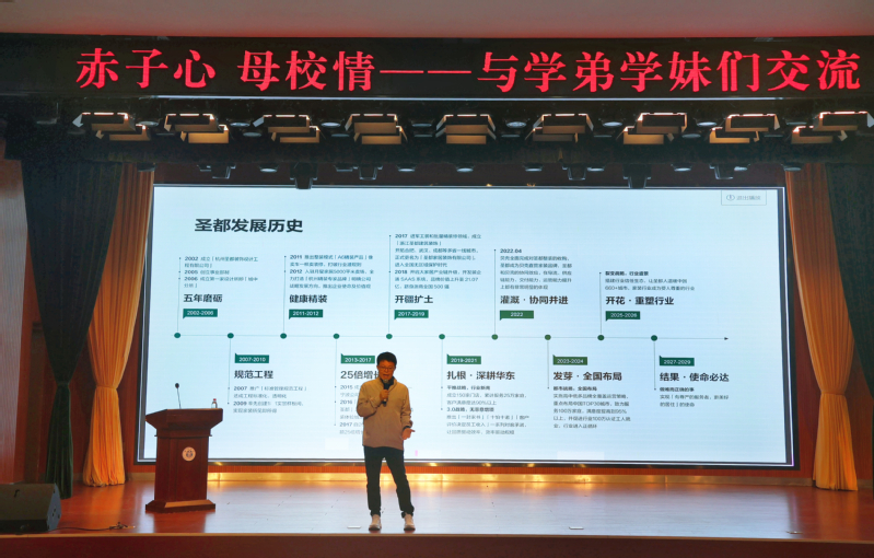 3月28号下午,求是报告厅座无虚席。“立心讲吧”优秀校友专场迎来必赢官网96级建筑装饰技术专业校友、圣都整装创始人颜伟阳。校友办、团委、建工学院等部门负责人与200余名青年学子共同对话优秀校友,活动由副校长郑文山主持。