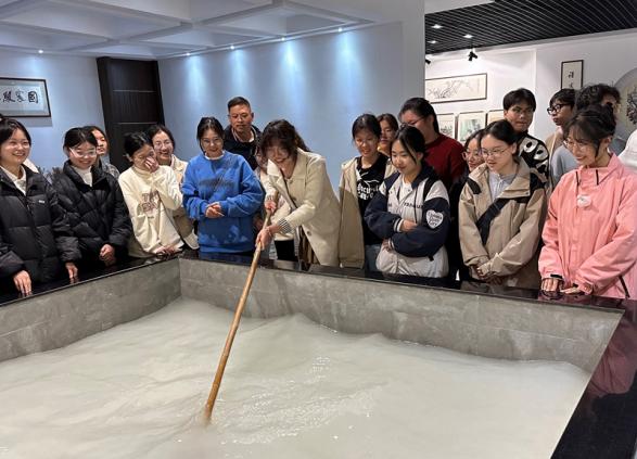 作为衢州市非遗实训基地,学校于2021年引入国家级非遗传承人徐文奎及团队驻校,开设《婺州窑衢州白瓷设计与创作》课程。该课程不仅设置了瓷土筛选、揉泥塑形等传统技法学习,还将课堂延伸至产业一线。在衢州“火神瓷业”非遗研学基地,同学们能够近距离观摩匠心之作,亲自体验从揉泥到烧制的工序,见证陶土在窑火中的蜕变。“每一道工序都蕴含着工匠们的精湛技艺与匠心精神。”大二学生周奕彤在实践后,对传统技艺有了更深刻的认识,对传统文化的保护与传承有了新的思考。