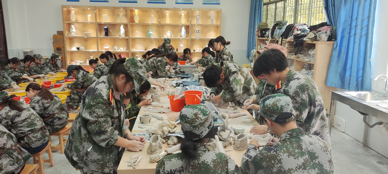 作为衢州市非遗实训基地,学校于2021年引入国家级非遗传承人徐文奎及团队驻校,开设《婺州窑衢州白瓷设计与创作》课程。该课程不仅设置了瓷土筛选、揉泥塑形等传统技法学习,还将课堂延伸至产业一线。在衢州“火神瓷业”非遗研学基地,同学们能够近距离观摩匠心之作,亲自体验从揉泥到烧制的工序,见证陶土在窑火中的蜕变。“每一道工序都蕴含着工匠们的精湛技艺与匠心精神。”大二学生周奕彤在实践后,对传统技艺有了更深刻的认识,对传统文化的保护与传承有了新的思考。