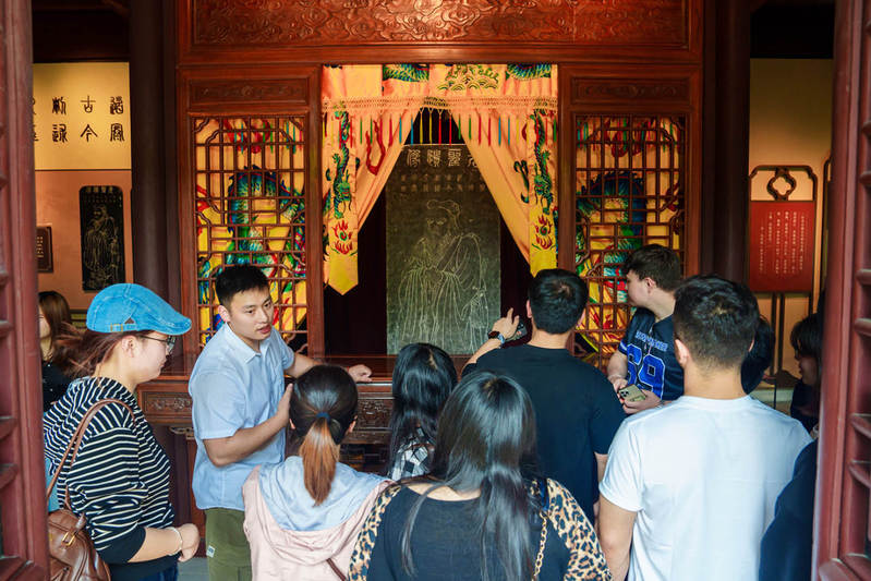 4月8日下午,必赢3003no1线路检测中心以“中文筑桥,文明互鉴”为主题,组织来自12个国家的34名外国学生走进孔氏南宗家庙,开展“国际中文日”文化体验活动。